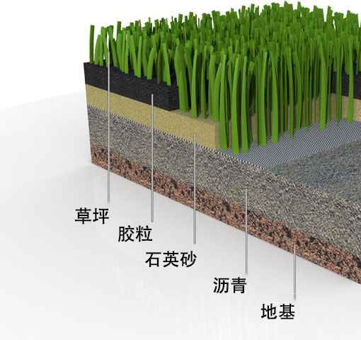 用人造草皮建造运动场地在国外已有几十年的历史,随着科学技术与体育事业的发展,由高性能聚乙烯、聚丙烯树脂纤维、抗紫外线抗老化“胺”物质隔层以及根据不同运动场功能的需要选配多种添加剂构成纤维编织的人造草皮可为专业的、业余运动人士创造十分理想的运动场地,它不仅可用于网球场,而且还用于铺设田径场跑道、棒球场、橄榄球场、游泳池周边和休闲场地绿化等,是一种多功能的运动场地铺设材料。